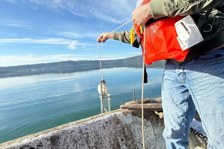 Sampling continues at Lake Vico with doctoral student Ajay Valiyaveettil Salimkumar